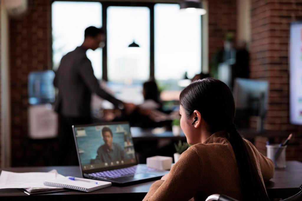 Kurze Reflexionsprompts nach jeder Einheit verankern Erkenntnisse. Flexible Remote‑Trainings geben Raum, Erfahrungen aufzuschreiben und später wieder aufzugreifen. Starten Sie heute Ihr Lernjournal und berichten Sie, welche Einsicht Sie überrascht hat.